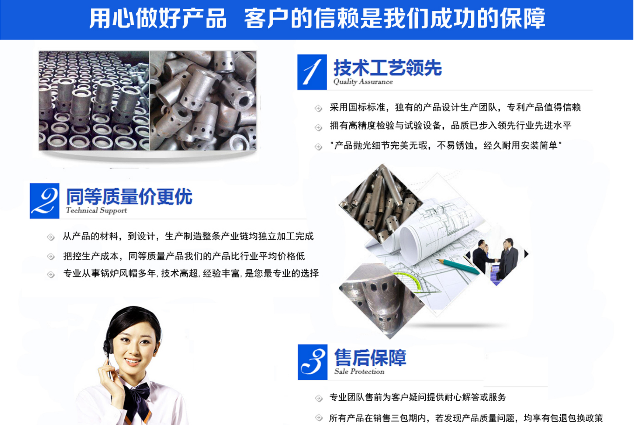 聊城营辉金属材料有限公司主营锅炉风帽,流化床风帽,锅炉铸钢风帽,锅炉风帽厂家等,我厂多年来凭借不断的行业经验提升自身的技术实力,在行业中领域达到了一个前所未有的高度,与我厂合作的大中小企业不胜枚举,我们拥有坚实的技术实力支持,可靠的团队,使用我厂生产的为您的产品生产安全来保驾护航!  一个合格的产品可以为您带来质量上的提升,并且保证生产安全更是当中的重中之重。我们更希望客户能够选择我们的产品,让我们与您共同奋斗?! ∥颐侵铝τ谧鲂幸档木?,为您解决所有您需要解决的问题!我们会认真对待每一个产品,保证您可以享受到完美的服务待遇!为您解决麻烦是我们的宗旨!  欢迎各位新老朋友到厂参观,莅临指导,欢迎随时咨询本站客服,我们将竭诚为您服务!...